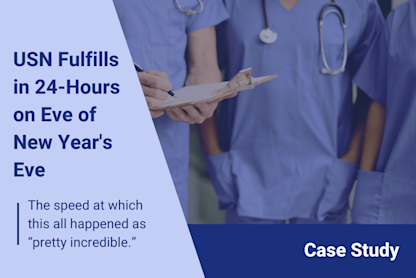 New Year’s Eve 2019 was dedicated to fulfilling the critical last-minute needs of a major healthcare system with a difficult staffing shortage. Answering the call without delay, USN mobilized to fill the total order in 24 hours, and client preparation was the key.